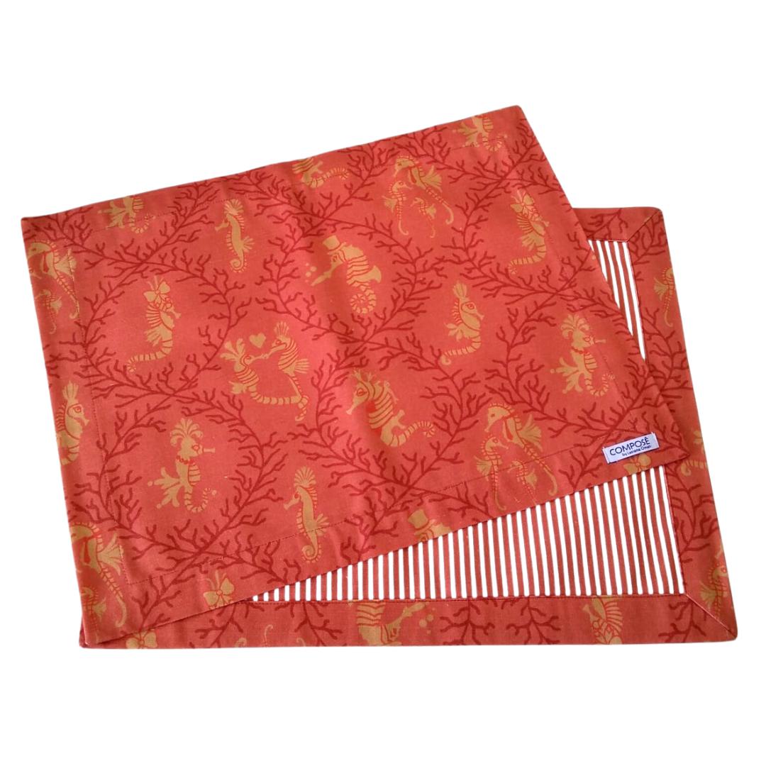 Jogo Americano Cavalo Marinho Fundo Coral